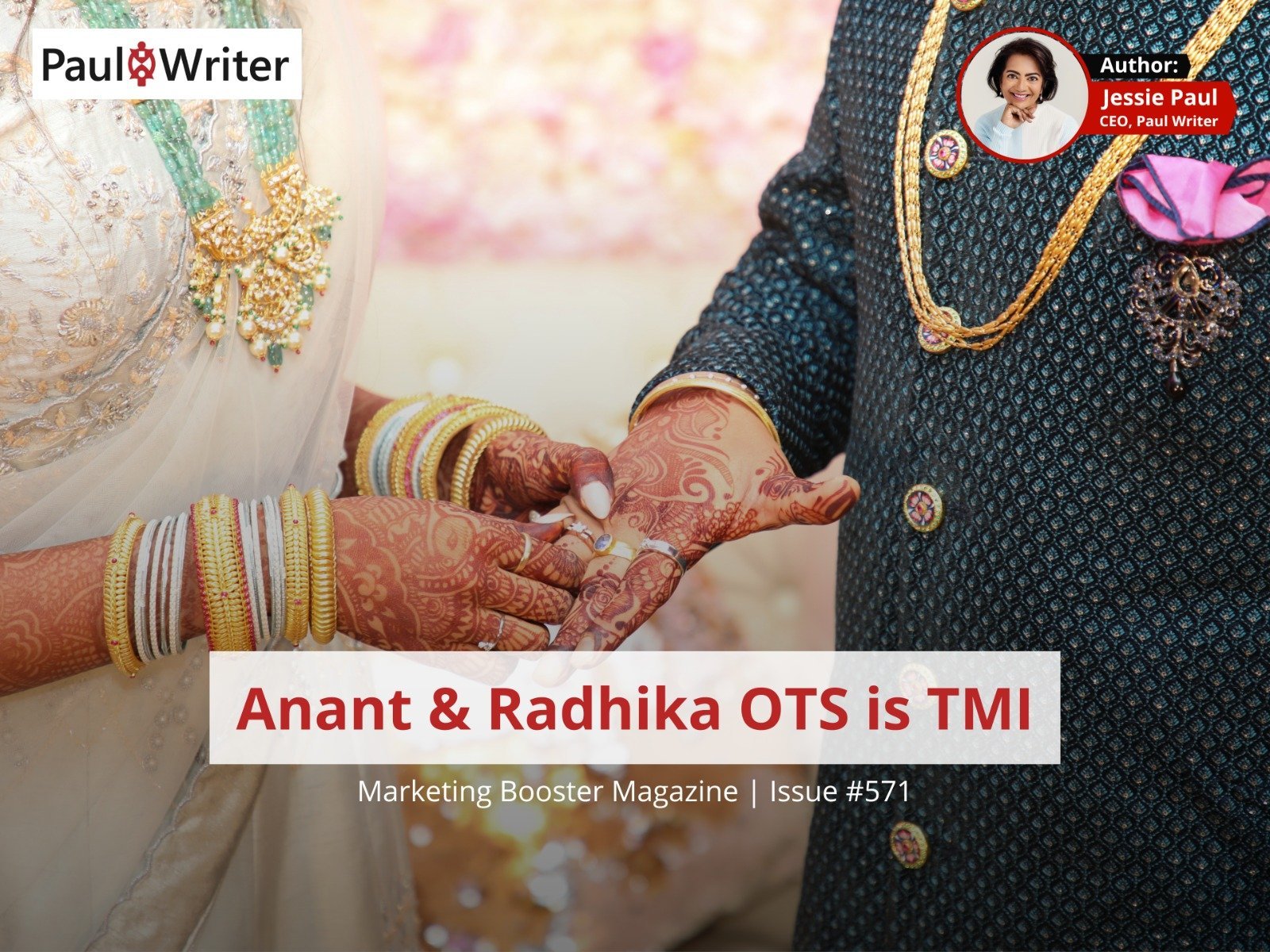 But this is a marketing newsletter and I am not going to fob you off with “5 marketing lessons we can learn from the Wedding of Anant & Radhika”. There’s just two!