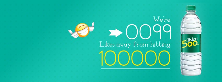 Once the fan count had reached 98,500, the cover page was changed with a text on it saying ”We’re 1,500 likes away from hitting 1,00,000″, beside an emoticon. As the BisleriFacebook page added fans, the fan counter kept decreasing with a new emoticon beside. This continued till the fan base reached the 1 lakh mark eventually. Watch the video at the end of the article.