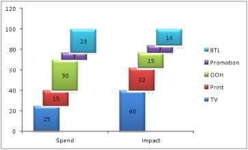 The percentage can also be converted to volume and value as these percentages are applied to the total sales in that specific period. Let us say that the 25% of sales came from TV and this coverts to a sale of Rs 10 crore(A). Let’s say the cost of TV is Rs 2 crore(B) for the TV campaign – then the ROI is simply 5(A/B). ROI can be computed for each channel and decisions made on increasing or reducing deployment based on the ROI.