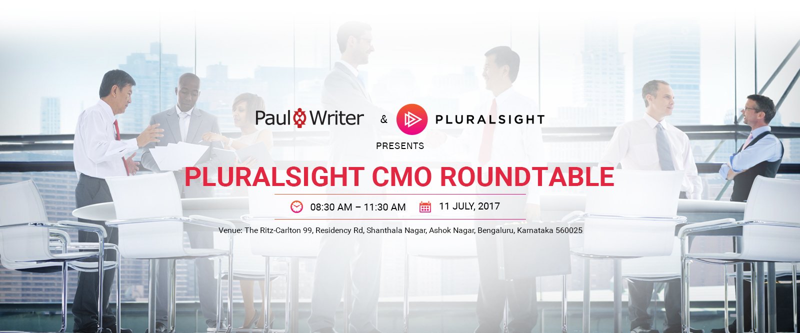 Paul Writer and Pluralsight invite you to join by-invitation CMO Roundtable at Ritz Carlton, Richmond Road, Bangalore on 11th July (Tuesday). This program seeks to bring a select group of senior marketers and digital heads together to discuss practices, tools, strategies and tactics that will be relevant for digital marketing in 2020. Recent roundtables have seen senior executives from organisations such as Star TV, Tata Motors, Hypercity Retail, ICICI Bank, Tata Sky, Vodafone, Titan, Future Group, HDFC Life Insurance, Pepperfry and more - photos can be viewed here https://www.facebook.com/b2bmarketer.